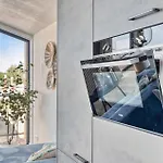 На кухне имеется микроволновая печь, кофеварка и кухонная утварь.